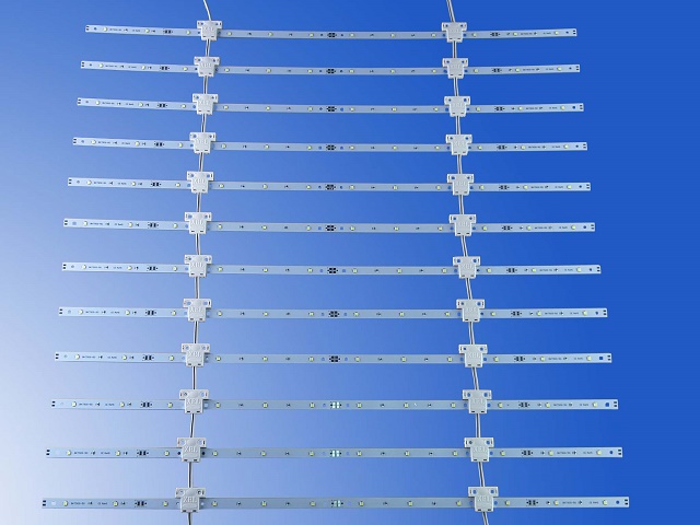 One of our favourites and essentially LED’s on a roll. However these rolls are configured at our factory to precise requirements required for the backlighting application. Imagine a rope ladder so for walls they arrive in widths and heights to suit are attached at the top using the fixing holes they roll down and are fixed at the bottom with each roll having a standard cable length of three metres. Can be used for flat and curved surfaces.